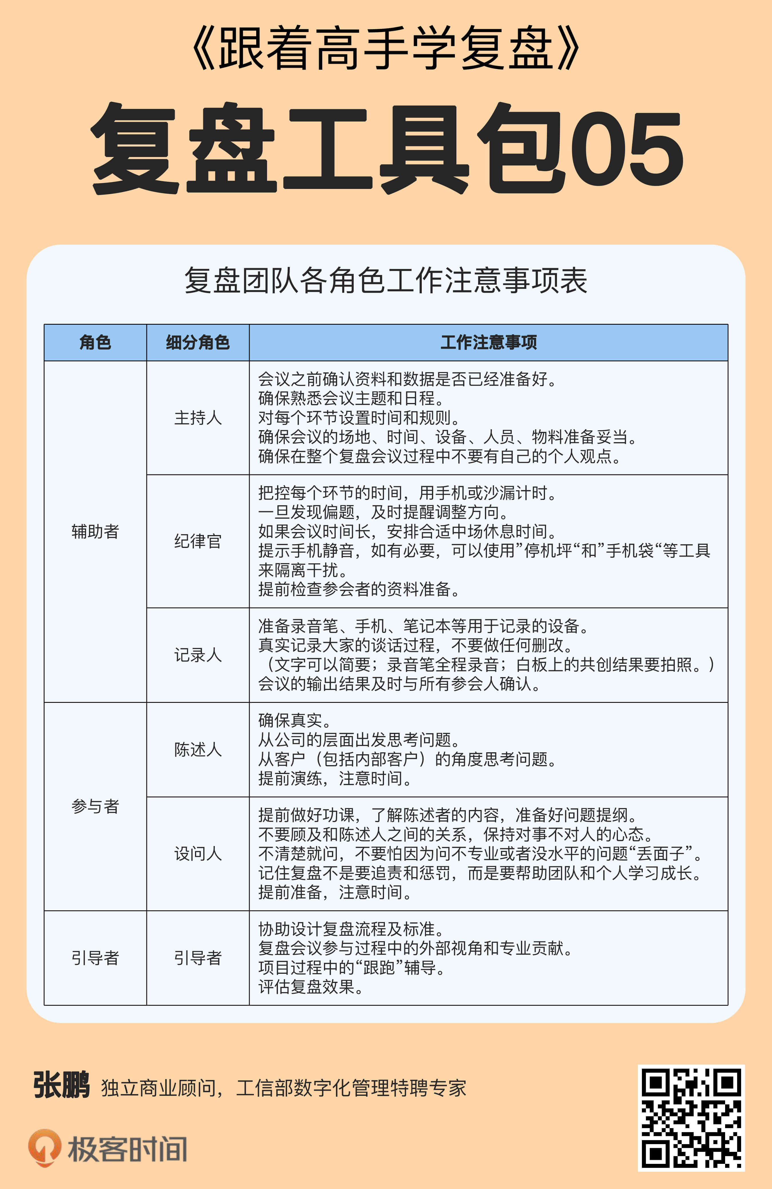 我把每个角色的复盘工作注意事项整理在了这个表格里。