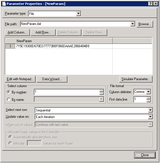 图4给出了参数化配置的界面截图,LoadRunner支持的参数化的数据源很丰富,既可以是excel文件,也可以是数据库中的表等。