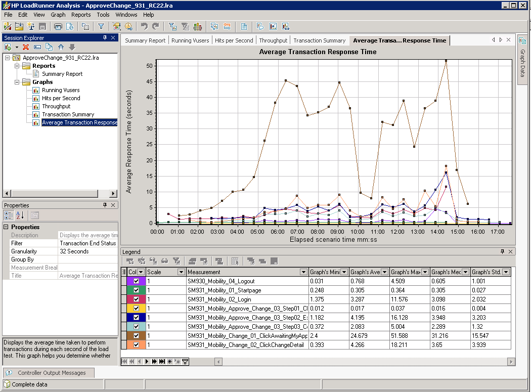 图8展示了使用LoadRunner Analysis展示事务平均响应时间的界面,我们可以看到图片右下角各个事务的最小响应时间、最大响应时间和平均响应时间。