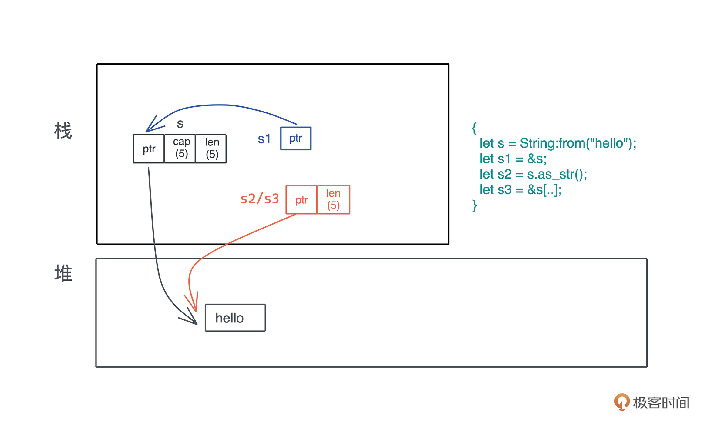对于 String、&String、&str,很多人也经常分不清它们的区别,我们在之前的一篇加餐中简单聊了这个问题,在上一讲智能指针中,也对比过String和&str。对于&String 和 &str,如果你理解了上文中 &Vec