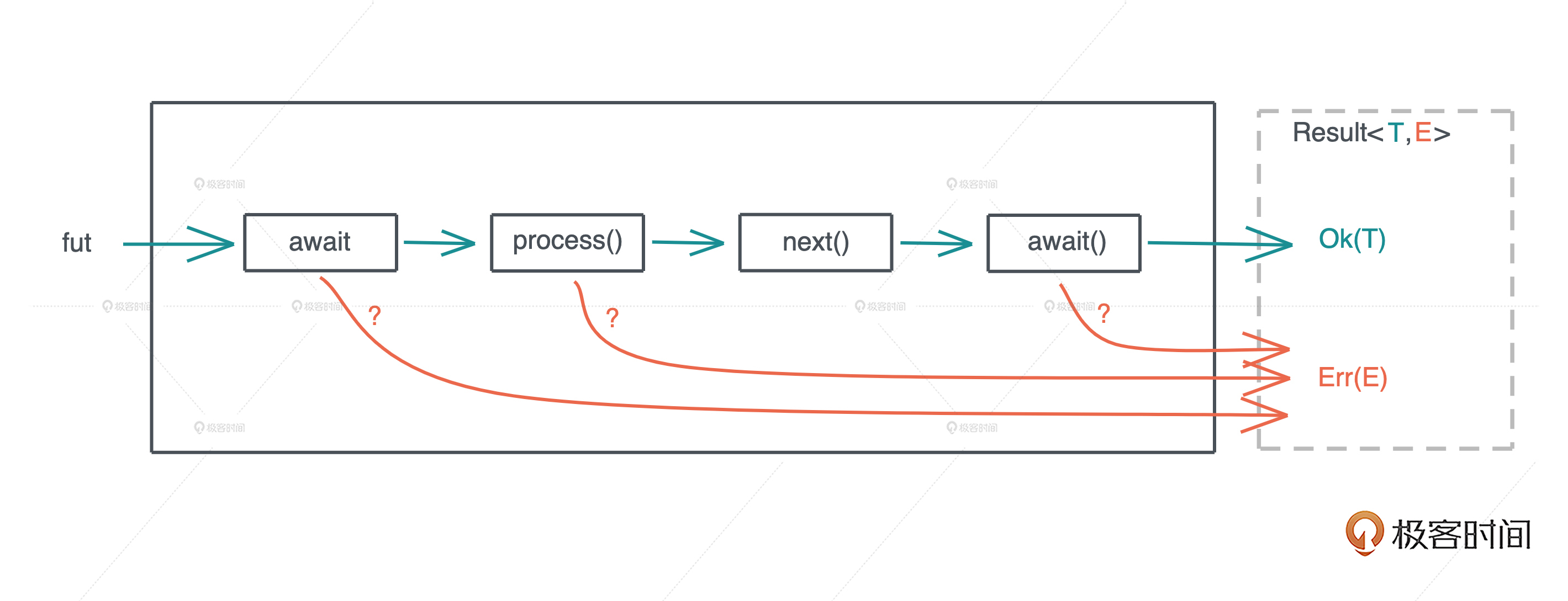 虽然 ? 操作符使用起来非常方便,但你要注意在不同的错误类型之间是无法直接使用的,需要实现 From trait 在二者之间建立起转换的桥梁,这会带来额外的麻烦。我们暂且把这个问题放下,稍后我们会谈到解决方案。