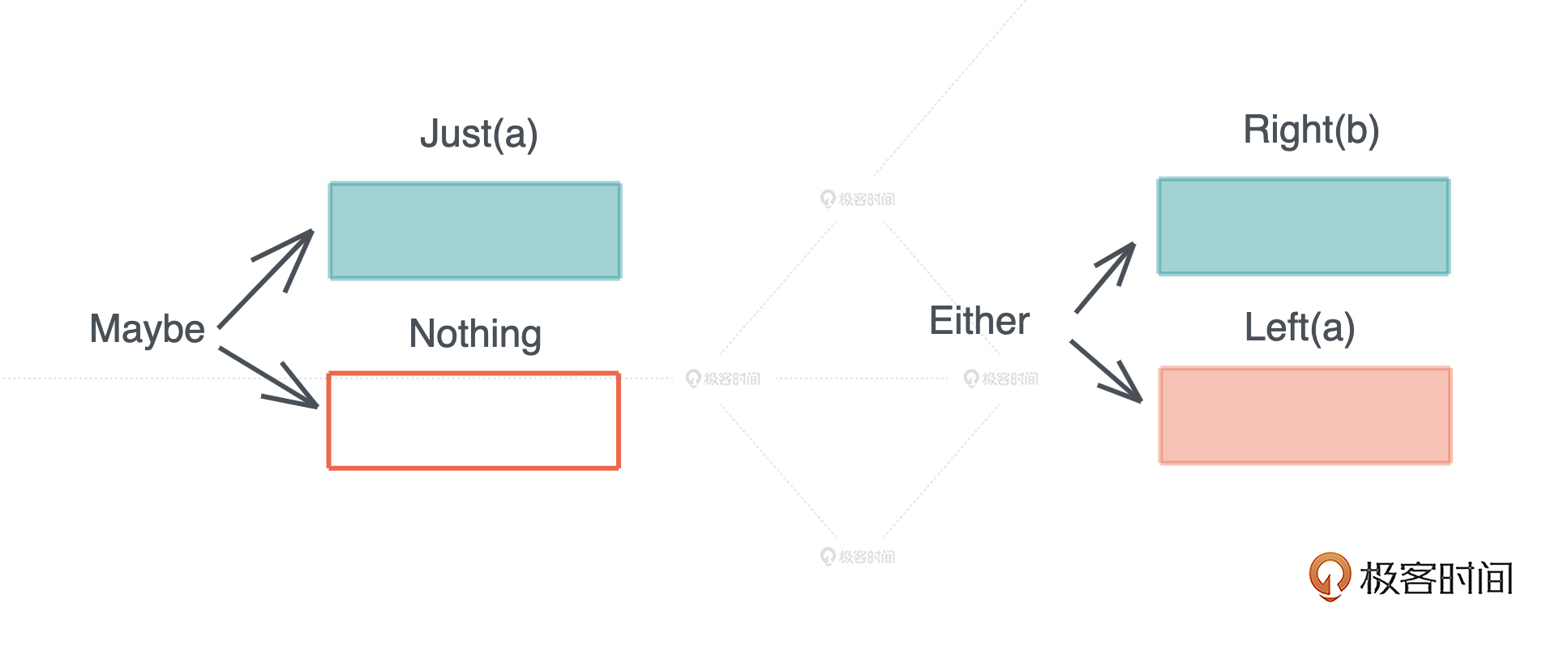 当我们需要更为复杂的错误处理时,我们可以使用 Either 类型。它允许数据是 Left a 或者 Right b 。其中,a 是运行出错的数据类型,b 可以是成功的数据类型。-