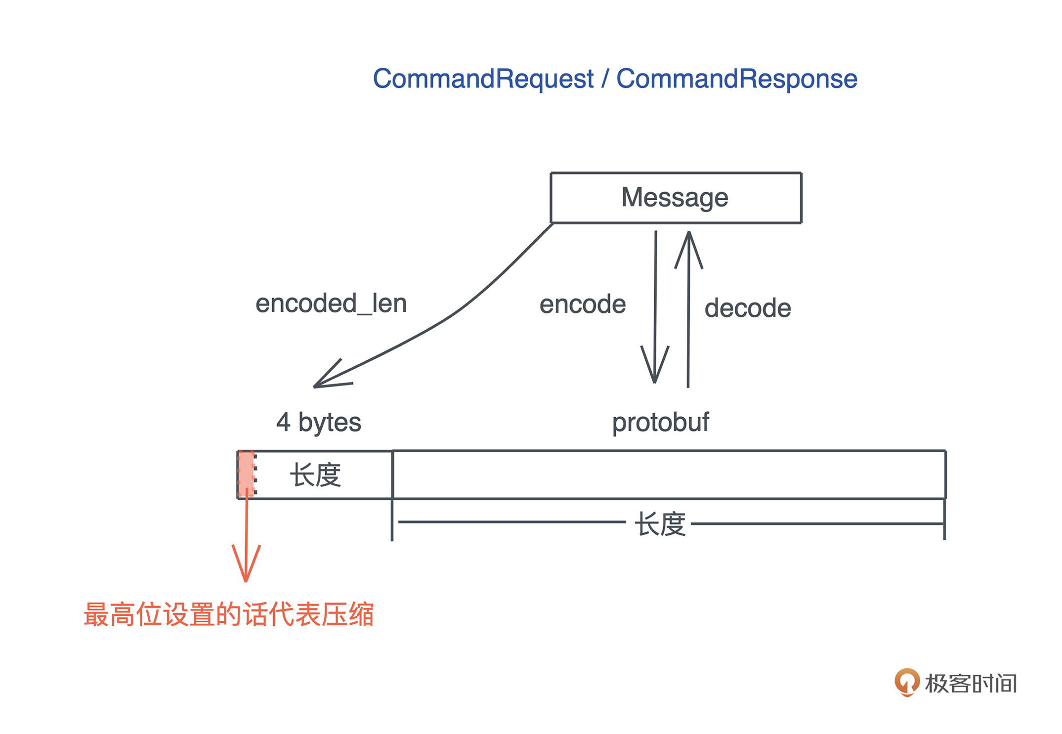 为了更贴近实际,我们把4字节长度的最高位拿出来作为是否压缩的信号,如果设置了,代表后续的 payload 是 gzip 压缩过的 protobuf,否则直接是 protobuf:-