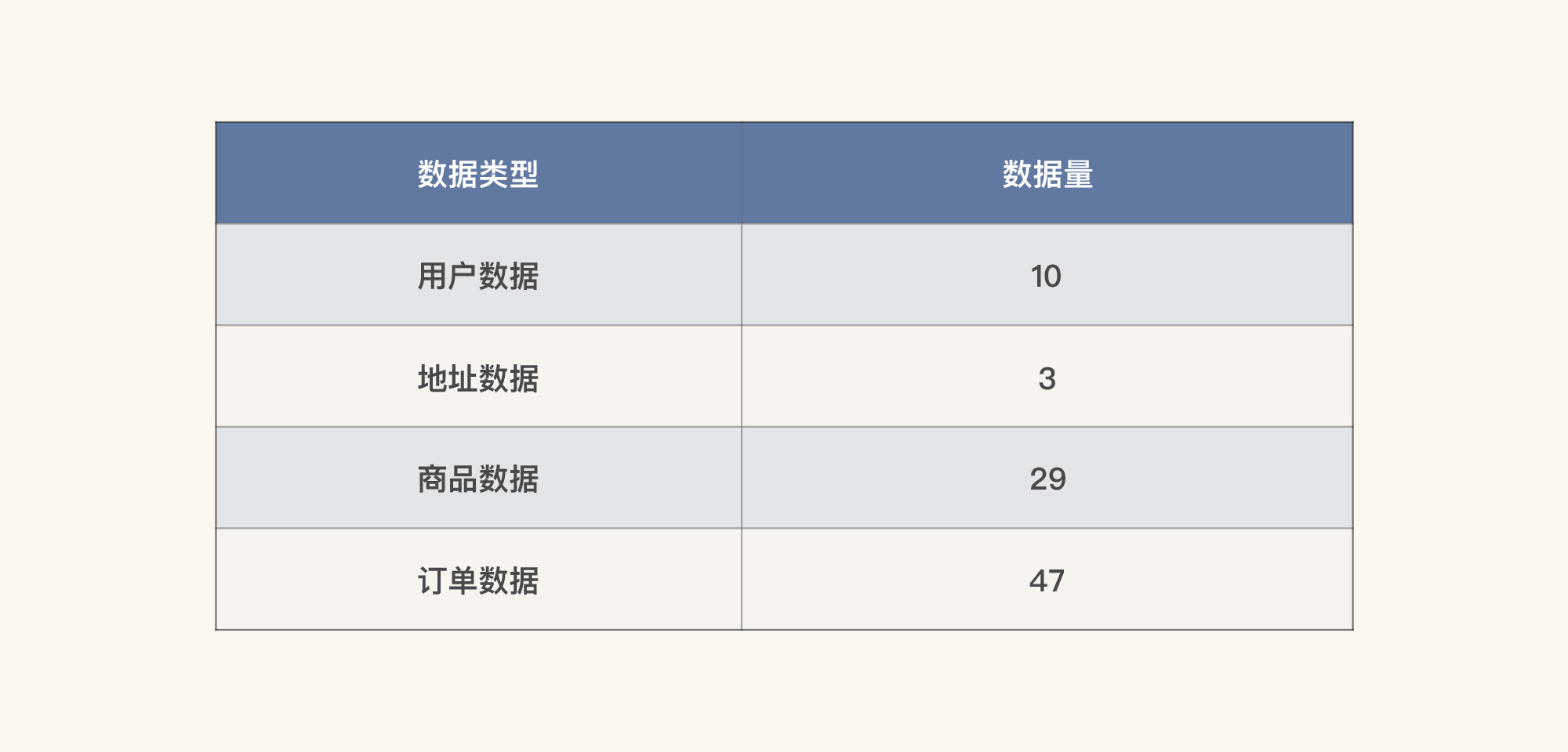 因为我们这个项目中的电商平台是开源的,数据库也完全是空的,系统中没有任何的数据。所以,我们虽然只是实现了电商的主流程,但需要的数据量仍然不少。这些数据包括: