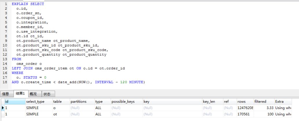 AND o.create_time < date_add(NOW(), INTERVAL - 120 MINUTE)