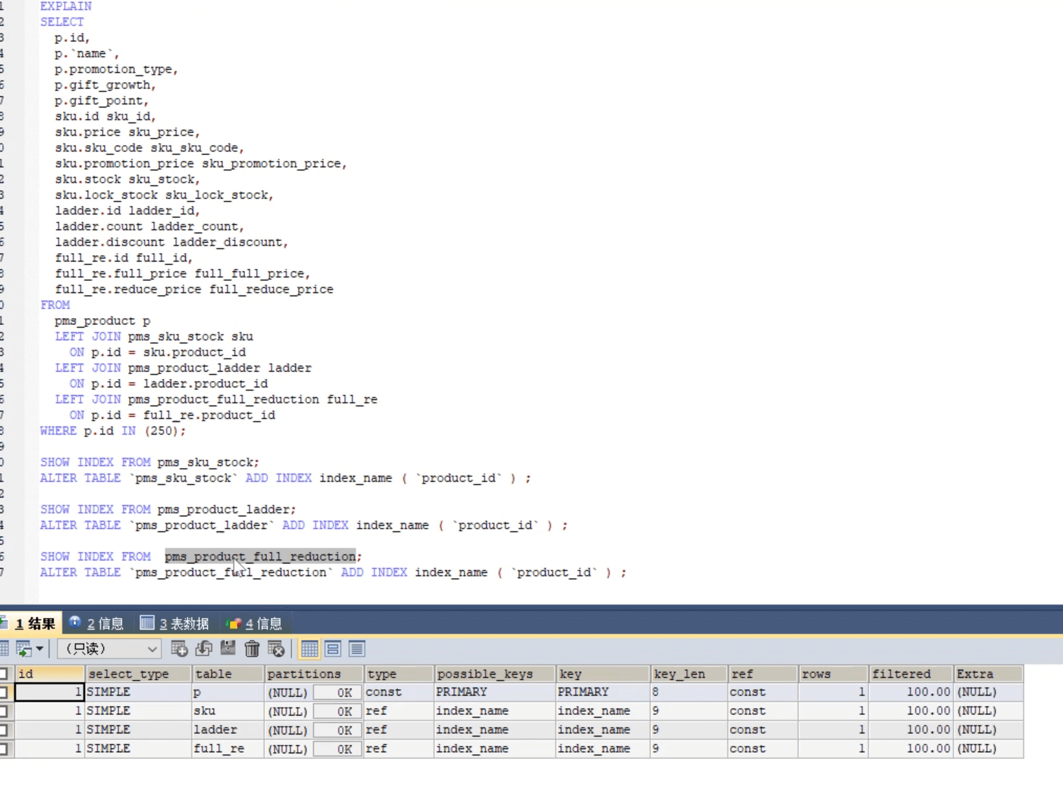 接着,我们进一步看看这个Select语句的索引: